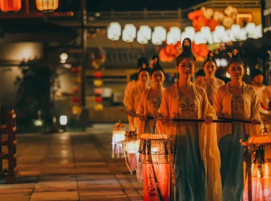また、ナイトツアーに足を運び、道中で素晴らしい劇を鑑賞しよう。園内では幻想的なショーが次から次へと絶え間なく続き、見ごたえある劇が舞台で展開される。あちこちに40あまり点在する実景演出は休むことなく常に連続で上演されていて、ここでは前人と後世の人々が千年を越えて対話しながら古今を貫き、力を合わせて夜を盛り上げている。